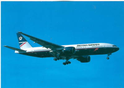 BRITISH AIRWAYS BOEING 777-200 G-VIIG POSTCARD