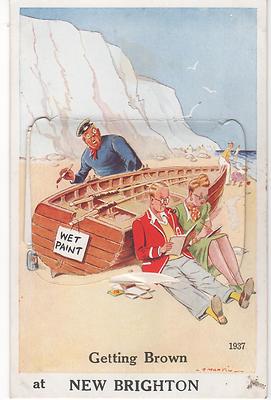 NEW BRIGHTON NOVELTY VIEWS POSTCARD AS SEEN USED.