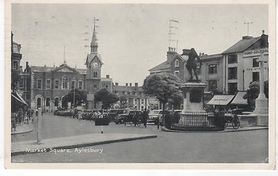 AYLESBURY MARKET SQUARE B/W POSTCARD 1956