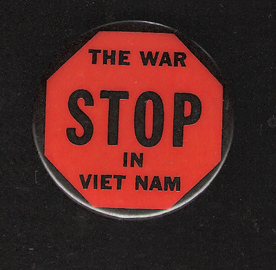 Title (ebay affiliate link): STOP the War in VIETNAM, a celluloid anti-Vietnam War button from 1960s