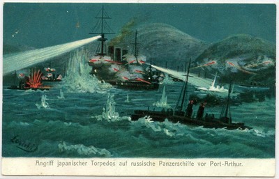 Russo-Japanese War 1904/05 - Japanese torpedo attack on Russian tanks-ships.