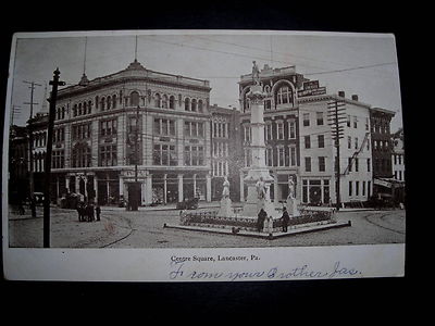 Title (ebay affiliate link): Lancaster, PA , Center Square 1900's adverting on bldgs can be read B & W image