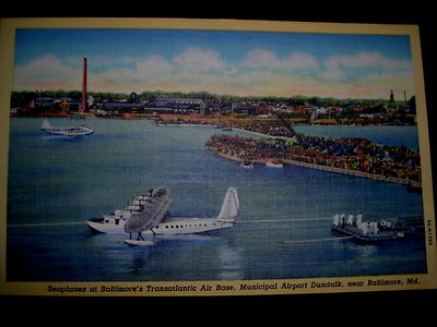 Title (ebay affiliate link): Dundalk, MD , seaplane Muncipal Airport for Baltimore , linen card