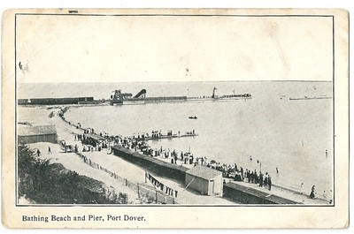 Title (ebay affiliate link): Bathing Beach and Pier, Port Dover, postmarked Port Dover 1907 W. Gordon, publ.
