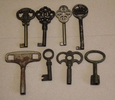 Title (ebay affiliate link): 8 old antique Vintage beautiful Skeleton Key Lock Cley clock Germany