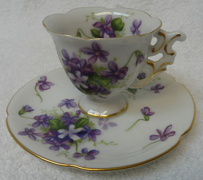 "Occupied Japan" Demitasse Teacup/Saucer Purple Spring Violets Rossetti -CC