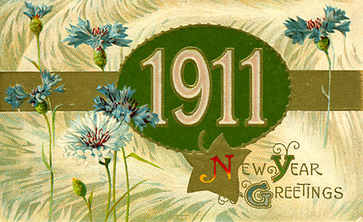 Antique 1911 New Years' Post Card , Embossed w/ Gold Foil & Blue Flowers