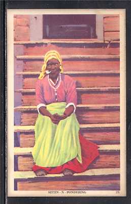 EARLY BLACK AMERICANA POSTCARD, OLD WOMAN SMOKING A PIPE, UNUSED