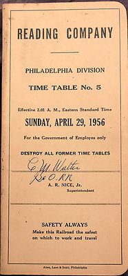 Title (ebay affiliate link): READING COMPANY RDG EMPLOYEE TIME TABLE NO5 PHILADELPHIA DIVISION APRIL 29, 1956