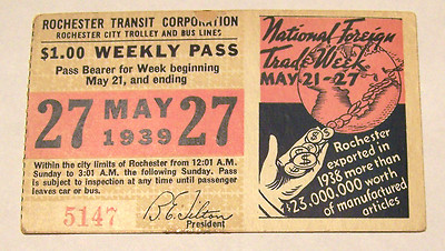 Title (ebay affiliate link): 1939 Weekly Pass ROCHESTER TRANSIT CORPORATION National Foreign Trade Week