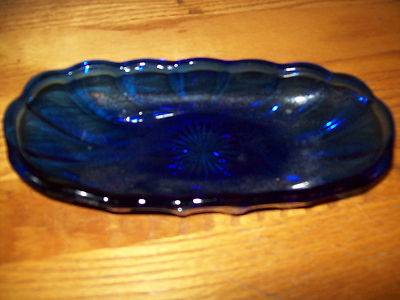 BEAUTIFUL & UNIQUE COBALT BLUE DEPRESSION GLASS VINTAGE BUTTER DISH