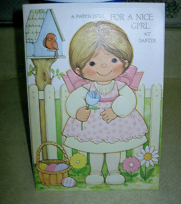 VINTAGE GREETING CARD 1980'S HAPPY EASTER PAPER DOLL GREETING CARD