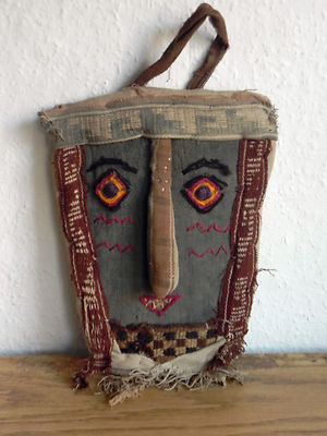 Title (ebay affiliate link): Fine old rare ancient Peruvian Pre Columbian textile fragment face in good cond