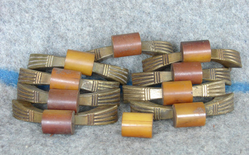 9 PIECE SET ANTIQUE VINTAGE DECO BAKELITE & BRASS DRAWER PULLS HANDLES