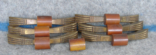 6 PIECE SET ANTIQUE VINTAGE DECO LARGE BAKELITE & BRASS DRAWER PULLS HANDLES