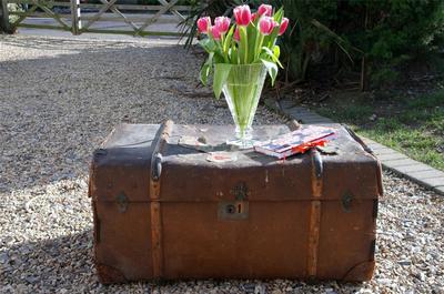 Vintage Steamer Trunk, Rustic Coffee Table, Blanket Box, Shabby Chic Toy Box