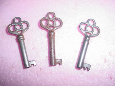 3 ~ Fancy Antique Furniture Hollow Barrel lock Keys old Cabinet doors Drawers !