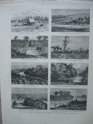1881 Antique Engravings- MANITOBA & NORTH DAKOTA BOUNDARY -Turtle Mountain