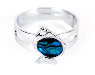 Antique Style Paua Sea Opal Ring Size 6.5-8 Fish