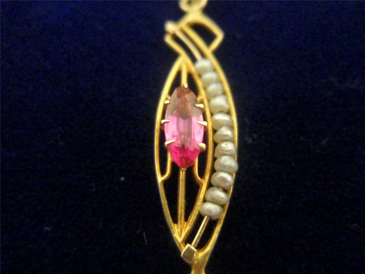 ANTIQUE NAT PEARL & PINK SAPPHIRE PENDANT, 10K