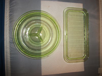 Title (ebay affiliate link): 2 Green Kitchenware Depression Glass Refridgerator Storage Lids Only