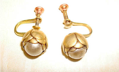 Title (ebay affiliate link): VTG / ANTIQUE Gold & Faux Pearl Screw Back Earrings