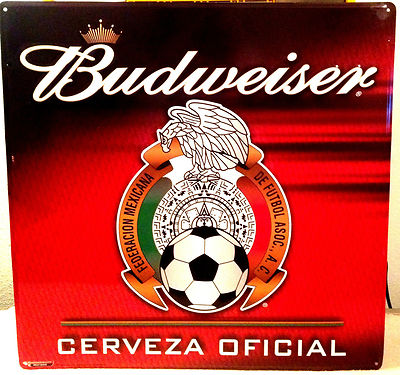 Title (ebay affiliate link): Rare Budweiser Bar Sign Beer Tin Official Cerveza De Futbol Soccer Mexico