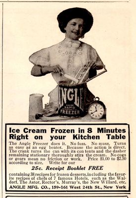 1909 ANGLE LAMP CO. ICE CREAM FREEZER AD