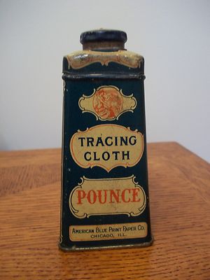 Title (ebay affiliate link): VINTAGE AMERICAN BLUE PRINT PAPER CO. POUNCE TRACING CLOTH TIN PAT'D SEPT 1914