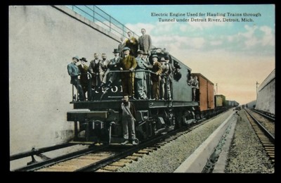 Title (ebay affiliate link): Detroit Mich Electric Engine Hauling Trains Postcard