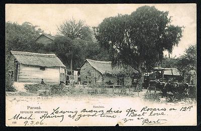 Title (ebay affiliate link): ARGENTINA, old postcard, Ranchos, PARANA, Argentina 1906 posted