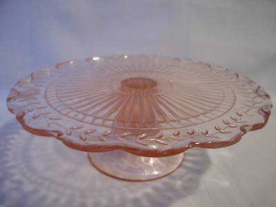 VINTAGE PINK GLASS PEDESTAL CAKE DESSERT PLATE