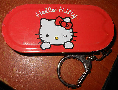 Vintage Sanrio Hello Kitty Metal Tin Container Trinket Box Keychain - 2004