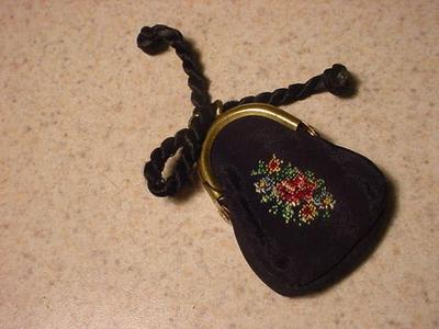 Vintage Miniature FLORAL TAPESTRY Coin Purse / Keychain GERMANY