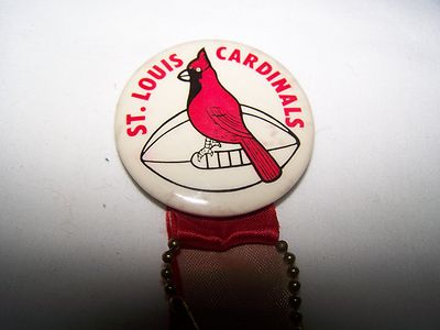 Title (ebay affiliate link): Vintage ST. LOUIS CARDINALS 1960's Pin back Button w/ribbon & Football Keychain