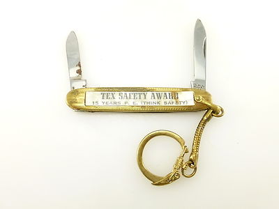Vintage Tex Safety Award 15 Year Advertising Colonial Pocket Knife Key Chain Fob