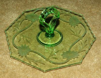 Title (ebay affiliate link): Vintage Etched Green Glass Serving Dish w/handle - Appetizers Desserts Parties