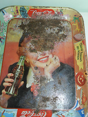 Title (ebay affiliate link): 1940s Coca-Cola (Coke) "Menu Girl" Serving Tray, metal, original, vintage