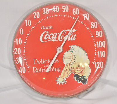 Title (ebay affiliate link): 1984 Drink Coca-Cola Round Thermometer, "Delicious and Refreshing"