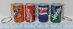 PEPSI FANTA MIX CANS LOT 4 MINIATURE KEYRINGS KEYCHAINS COLLECTIBLE FREE