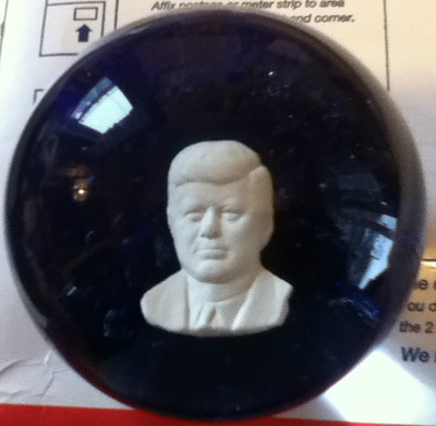 Title (ebay affiliate link): John F Kennedy Sulfide St. Clair Paperweight 1971