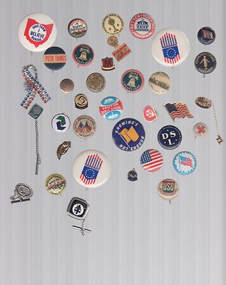 Title (ebay affiliate link): Miscellaneous pinback buttons, tie tacks and others