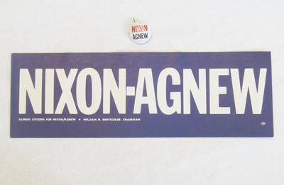 Title (ebay affiliate link): 1972 Nixon-Agnew Presidential Campaign Bumper Sticker Pinback Button - Unused