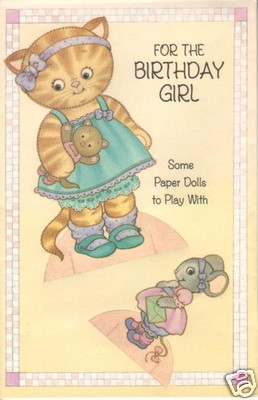 MANDY MOUSE KATY KITTY AMERICAN Greeting Paper Doll Card RARE Uncut Vintage MINT