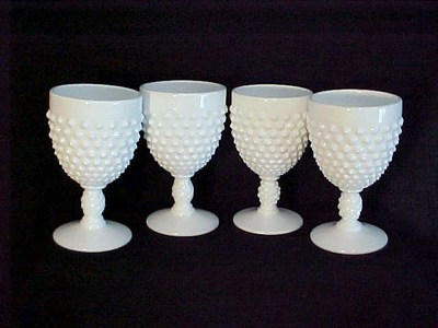 Fenton Milk Glass Hobnail 4 Water Goblets