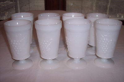 Title (ebay affiliate link): Set of 8 Anchor Hocking Milk Glass Grape Leaf Footed Goblets/Tumblers