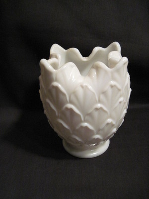Title (ebay affiliate link): Vintage Milk Glass White 5" Leaf Design Rose Bowl Vase NICE