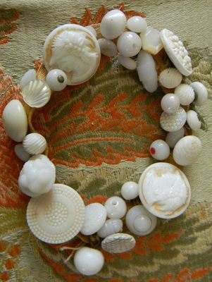 Title (ebay affiliate link): Antq Steampunk Victorian Milk Glass Button Bracelet Molded Figural Buttons