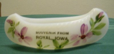 Milk glass canoe-Souvenir of Royal, Ia.