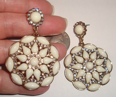 Title (ebay affiliate link): Vintage Estate Jewel White Milk Glass Rhinestone Dangle Bridal Pierced Earrings